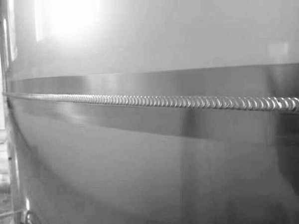 - Le houblon cylindrique en forme de dôme supérieur permet l'insertion de houblon en ligne, adopté avec une circulation de moût pour un mélange efficace.