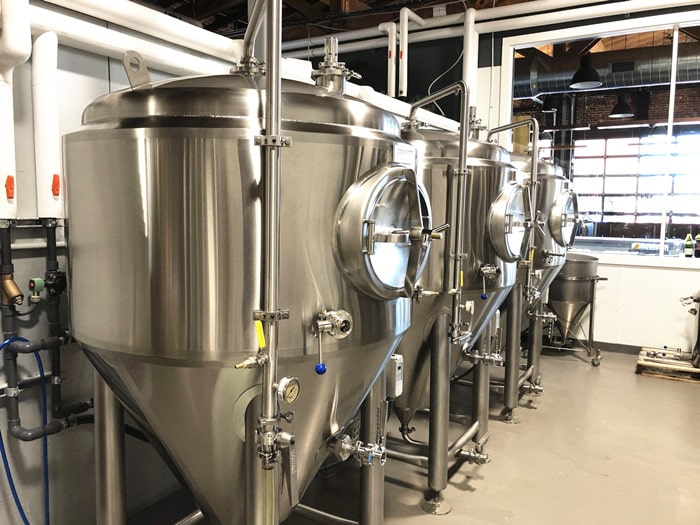 Le moût est bouilli et tourbillonné à l'intérieur du réservoir