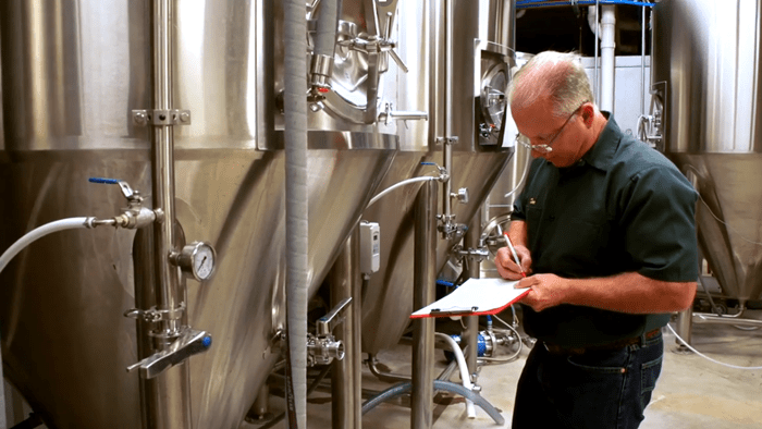 Le brasseur enregistre la température, l'état de la bière à l'intérieur du réservoir de fermentation