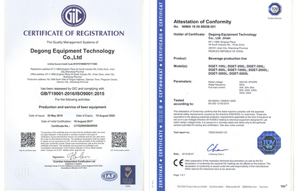 La qualité du système de brasserie a une influence directe sur la qualité de la bière. Il est donc essentiel de s'assurer que le système de brasserie de bière est sanitaire et de haute qualité. Ici, je vais vous présenter deux parties principales du système de brasserie de bière DEGONG: le système de brasserie de bière et le système de fermentation de bière. Veuillez vérifier ci-dessous: